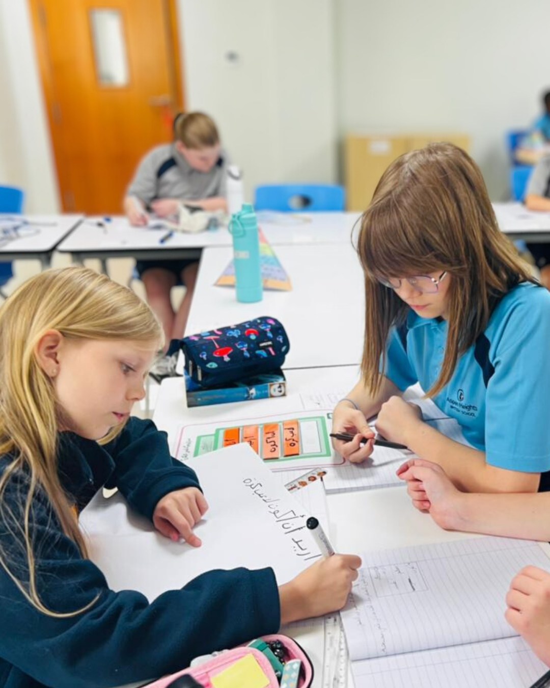 En Aspen Heights British School, los más pequeños —de tres a cinco años— siguen el marco Early Years Foundation Stage, que abarca siete áreas de desarrollo. Mientras construyen habilidades comunicativas, coordinación física y bases de lectoescritura, exploran su entorno mediante expresión creativa: música, danza y arte. También inician clases de árabe cuatro veces por semana. Posteriormente, los estudiantes de primaria (Years 1-6) abordan el currículo nacional británico a través de proyectos temáticos que fomentan la indagación autónoma, integrando matemáticas, ciencias, inglés e informática junto con árabe, historia, geografía, artes, diseño, música, educación física y francés desde Year 3.
